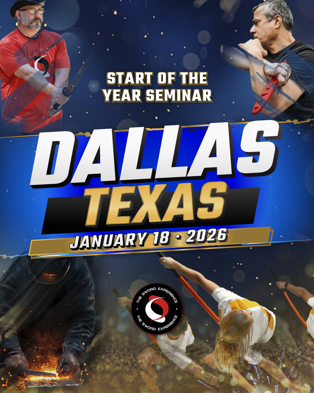 Join us for an unforgettable beginning-of-year celebration with The Sword Experience! This action-packed event features dynamic sword training sessions, engaging knife and sword presentations, with exercises to fuel both body and mind. Not only will you have the chance to train with Adrian Paul but you’ll be able to learn how knives are forged with live knife forging by Ron Hardman (a winner from “Forged in Fire”): participate in a knife disarming workshop with martial arts expert and use of force instructor at the HIllsborough County Sheriff’s Office, Anthony Barnebeo. as well as other sessions aimed to help you connect, learn, and begin the year with focus and determination. AND you’ll get a catered lunch.